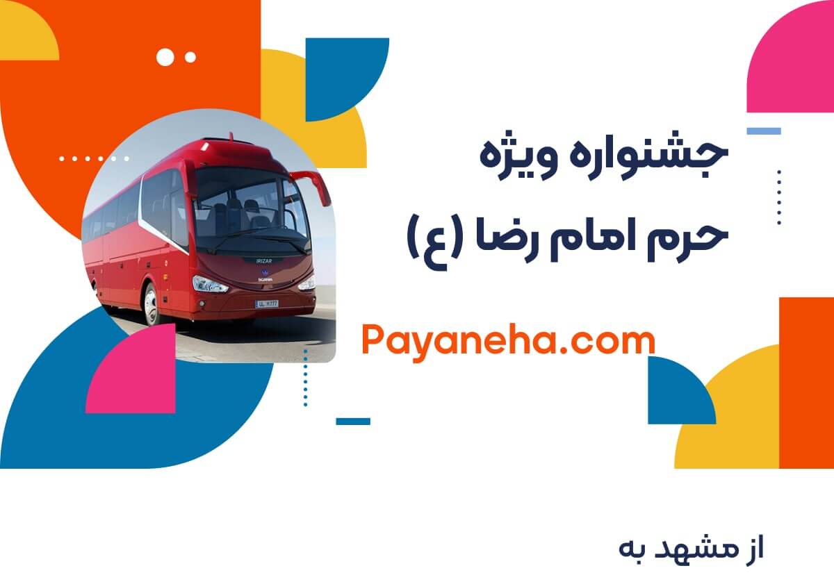 به مناسبت فرارسیدن میلاد امام رضا (ع) شما میتوانید بلیط اتوبوس خود را از هر شهری که هستید در سایت پایانه ها خرید کنید و از تخفیفات ویژه خرید بلیط در این سایت بهره مند شوید. شما میتوانید در هر زمان از شبانه روز بلیط مشهد خود رو بخرین و در تاریخ مورد نظر در ترمینال حاضر بشین.